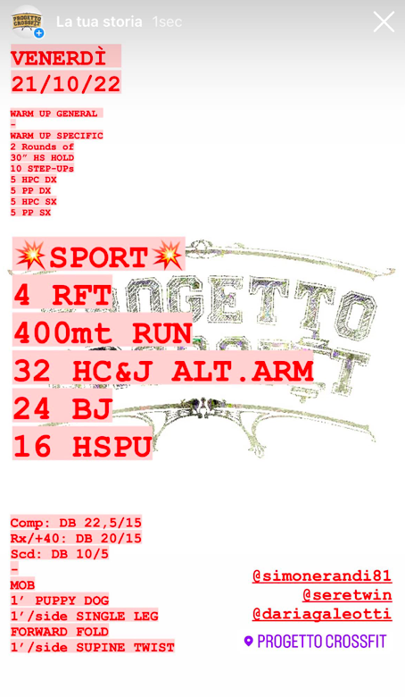 Pubblicato daprogettocrossfit21 ottobre 202225 ottobre 2022Pubblicato in: Wod Condividi: Fai clic per condividere su X (Si apre in una nuova finestra) X Fai clic per condividere su Facebook (Si apre in una nuova finestra) Facebook Mi piace Caricamento... Correlati