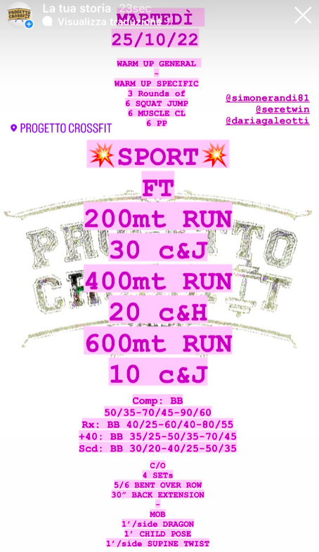 Pubblicato daprogettocrossfit25 ottobre 2022Pubblicato in: Wod Condividi: Fai clic per condividere su X (Si apre in una nuova finestra) X Fai clic per condividere su Facebook (Si apre in una nuova finestra) Facebook Mi piace Caricamento... Correlati