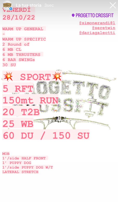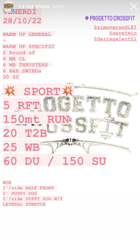 Pubblicato daprogettocrossfit28 ottobre 202231 ottobre 2022Pubblicato in: Wod Condividi: Fai clic per condividere su X (Si apre in una nuova finestra) X Fai clic per condividere su Facebook (Si apre in una nuova finestra) Facebook Mi piace Caricamento... Correlati
