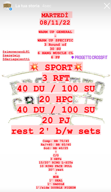 Pubblicato daprogettocrossfit8 novembre 202212 novembre 2022Pubblicato in: Wod Condividi: Fai clic per condividere su X (Si apre in una nuova finestra) X Fai clic per condividere su Facebook (Si apre in una nuova finestra) Facebook Mi piace Caricamento... Correlati