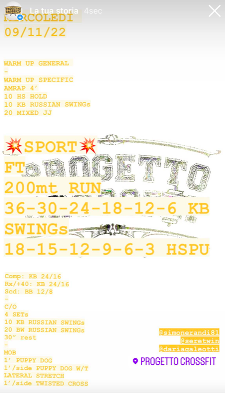 Pubblicato daprogettocrossfit9 novembre 202212 novembre 2022Pubblicato in: Wod Condividi: Fai clic per condividere su X (Si apre in una nuova finestra) X Fai clic per condividere su Facebook (Si apre in una nuova finestra) Facebook Mi piace Caricamento... Correlati
