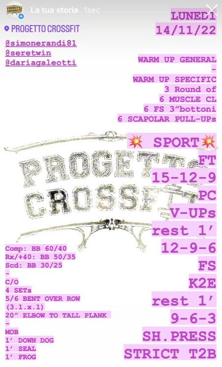 Pubblicato daprogettocrossfit14 novembre 202219 novembre 2022Pubblicato in: Wod Condividi: Fai clic per condividere su X (Si apre in una nuova finestra) X Fai clic per condividere su Facebook (Si apre in una nuova finestra) Facebook Mi piace Caricamento... Correlati