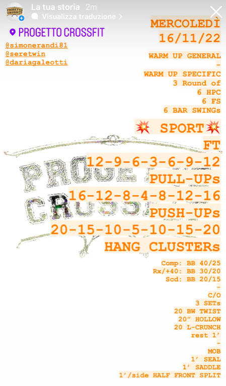 Pubblicato daprogettocrossfit16 novembre 202219 novembre 2022Pubblicato in: Wod Condividi: Fai clic per condividere su X (Si apre in una nuova finestra) X Fai clic per condividere su Facebook (Si apre in una nuova finestra) Facebook Mi piace Caricamento... Correlati