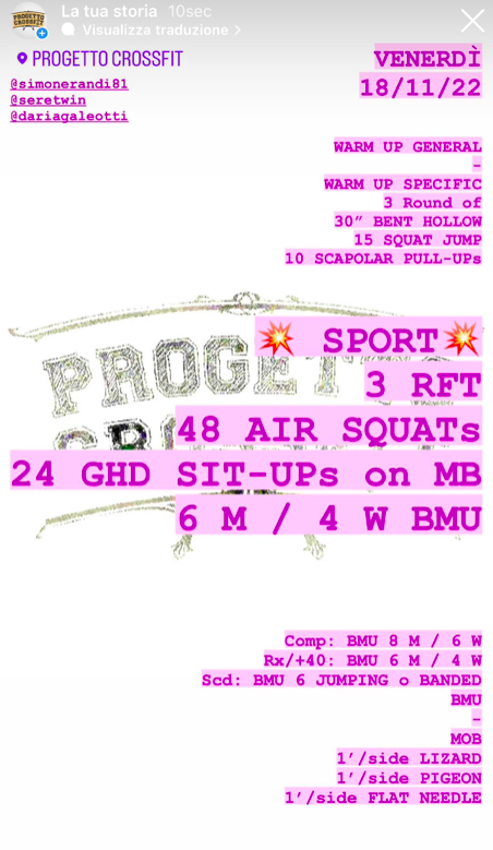 Pubblicato daprogettocrossfit18 novembre 202219 novembre 2022Pubblicato in: Wod Condividi: Fai clic per condividere su X (Si apre in una nuova finestra) X Fai clic per condividere su Facebook (Si apre in una nuova finestra) Facebook Mi piace Caricamento... Correlati
