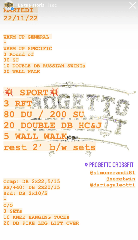 Pubblicato daprogettocrossfit22 novembre 20222 dicembre 2022Pubblicato in: Wod Condividi: Fai clic per condividere su X (Si apre in una nuova finestra) X Fai clic per condividere su Facebook (Si apre in una nuova finestra) Facebook Mi piace Caricamento... Correlati