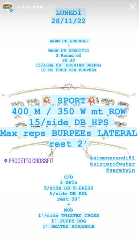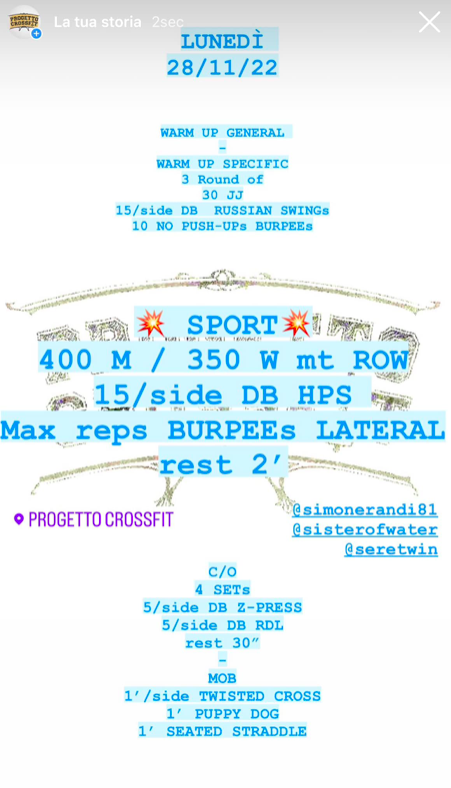 Pubblicato daprogettocrossfit28 novembre 20222 dicembre 2022Pubblicato in: Wod Condividi: Fai clic per condividere su X (Si apre in una nuova finestra) X Fai clic per condividere su Facebook (Si apre in una nuova finestra) Facebook Mi piace Caricamento... Correlati