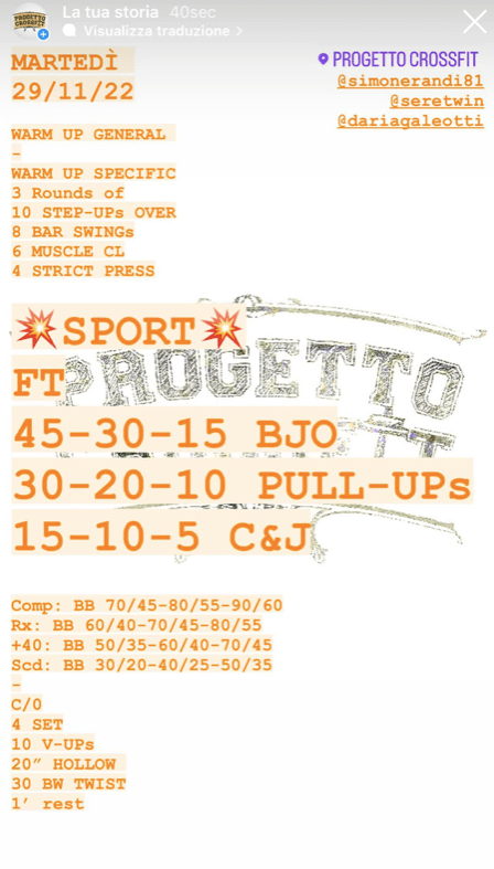 Pubblicato daprogettocrossfit29 novembre 20222 dicembre 2022Pubblicato in: Wod Condividi: Fai clic per condividere su X (Si apre in una nuova finestra) X Fai clic per condividere su Facebook (Si apre in una nuova finestra) Facebook Mi piace Caricamento... Correlati