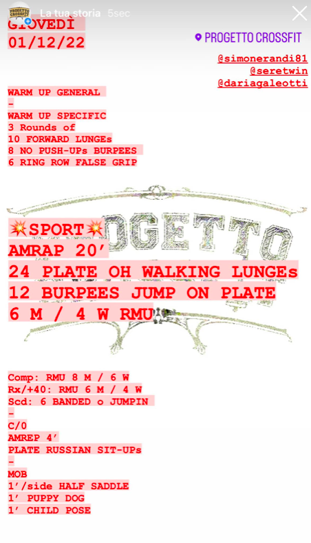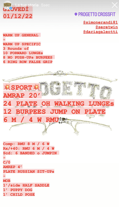 Pubblicato daprogettocrossfit1 dicembre 20222 dicembre 2022Pubblicato in: Wod Condividi: Fai clic per condividere su X (Si apre in una nuova finestra) X Fai clic per condividere su Facebook (Si apre in una nuova finestra) Facebook Mi piace Caricamento... Correlati