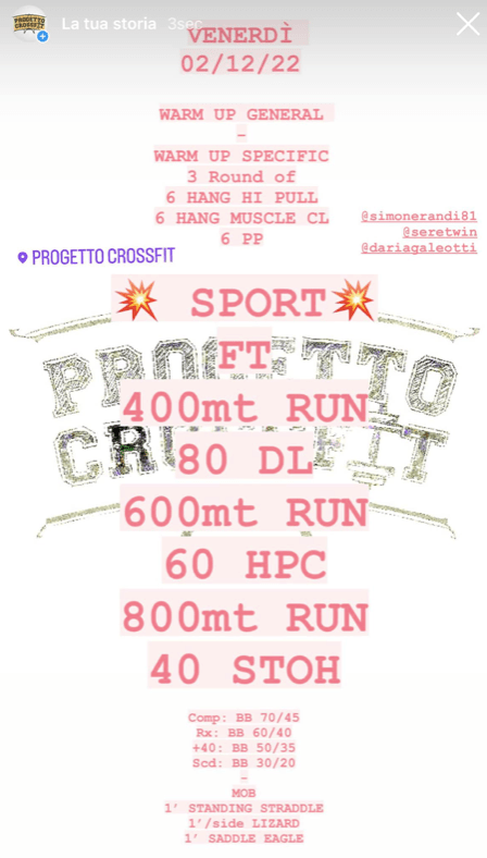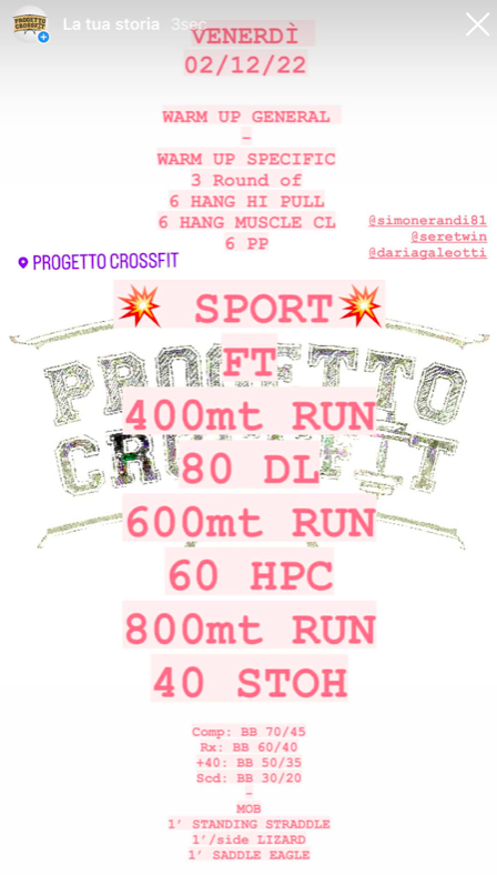 Pubblicato daprogettocrossfit2 dicembre 2022Pubblicato in: Wod Condividi: Fai clic per condividere su X (Si apre in una nuova finestra) X Fai clic per condividere su Facebook (Si apre in una nuova finestra) Facebook Mi piace Caricamento... Correlati