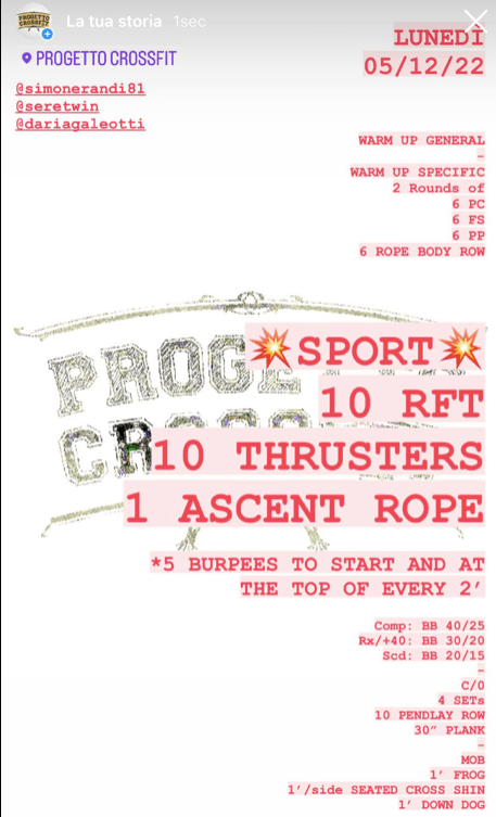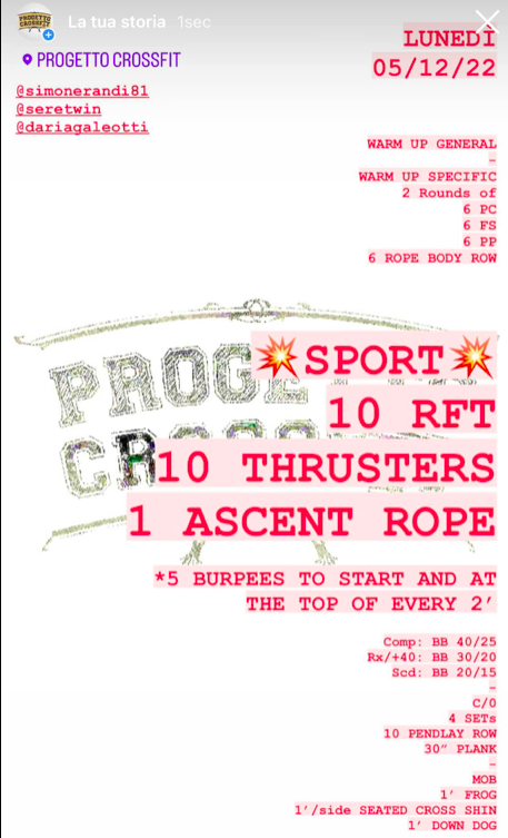 Pubblicato daprogettocrossfit5 dicembre 20229 dicembre 2022Pubblicato in: Wod Condividi: Fai clic per condividere su X (Si apre in una nuova finestra) X Fai clic per condividere su Facebook (Si apre in una nuova finestra) Facebook Mi piace Caricamento... Correlati