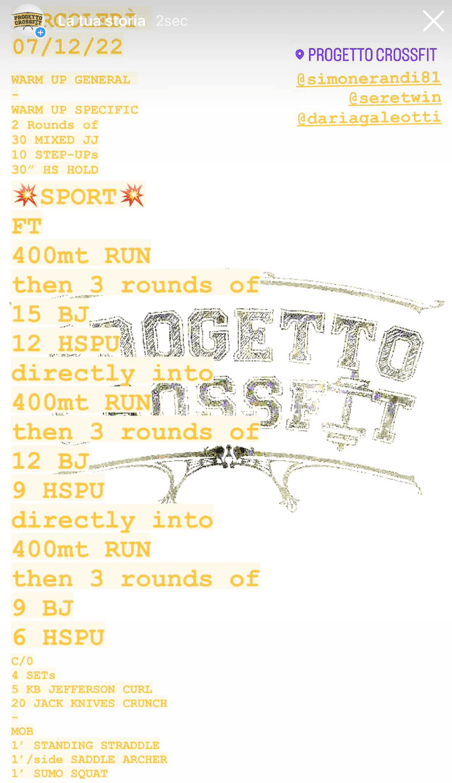 Pubblicato daprogettocrossfit7 dicembre 20229 dicembre 2022Pubblicato in: Wod Condividi: Fai clic per condividere su X (Si apre in una nuova finestra) X Fai clic per condividere su Facebook (Si apre in una nuova finestra) Facebook Mi piace Caricamento... Correlati