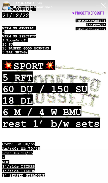 Pubblicato daprogettocrossfit21 dicembre 202228 dicembre 2022Pubblicato in: Wod Condividi: Fai clic per condividere su X (Si apre in una nuova finestra) X Fai clic per condividere su Facebook (Si apre in una nuova finestra) Facebook Mi piace Caricamento... Correlati