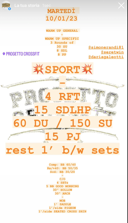 Pubblicato daprogettocrossfit10 gennaio 202313 gennaio 2023Pubblicato in: Wod Condividi: Fai clic per condividere su X (Si apre in una nuova finestra) X Fai clic per condividere su Facebook (Si apre in una nuova finestra) Facebook Mi piace Caricamento... Correlati