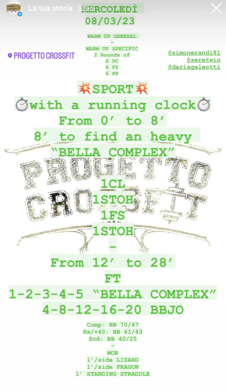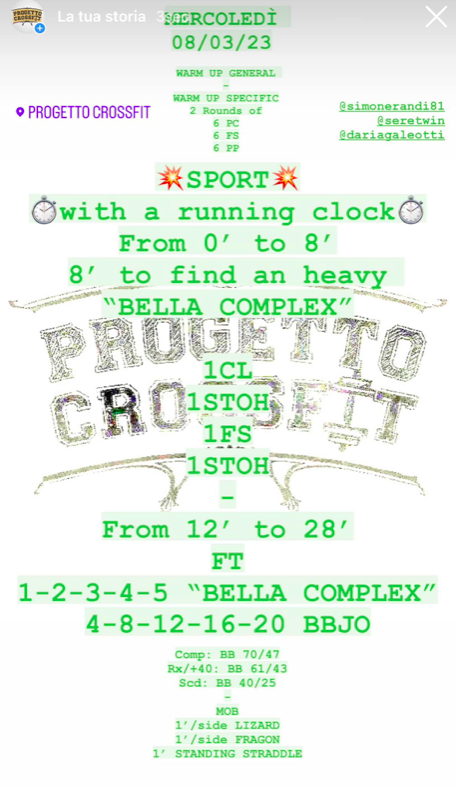 Pubblicato daprogettocrossfit8 marzo 202312 marzo 2023Pubblicato in: Wod Condividi: Fai clic per condividere su X (Si apre in una nuova finestra) X Fai clic per condividere su Facebook (Si apre in una nuova finestra) Facebook Mi piace Caricamento... Correlati