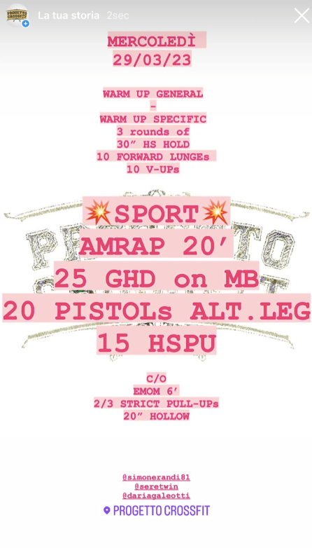Pubblicato daprogettocrossfit29 marzo 20232 aprile 2023Pubblicato in: Wod Condividi: Fai clic per condividere su X (Si apre in una nuova finestra) X Fai clic per condividere su Facebook (Si apre in una nuova finestra) Facebook Mi piace Caricamento... Correlati