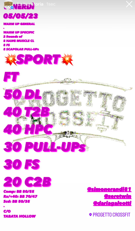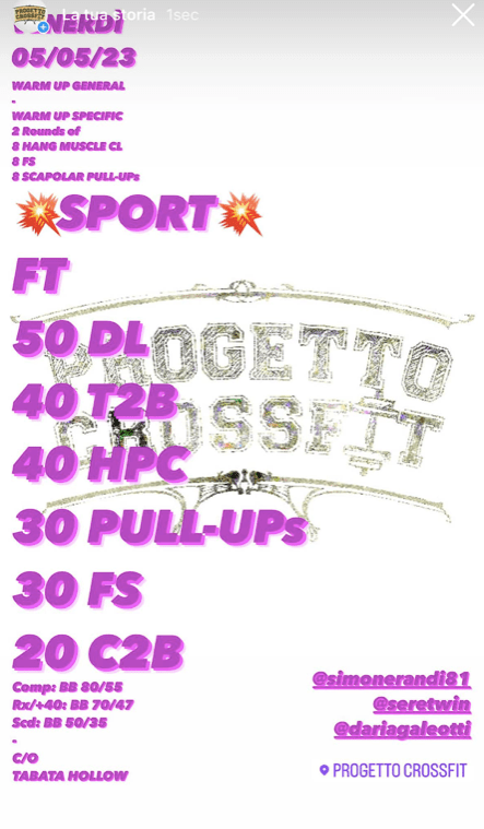 Pubblicato daprogettocrossfit5 Maggio 202314 Maggio 2023Pubblicato in: Wod Condividi: Fai clic per condividere su X (Si apre in una nuova finestra) X Fai clic per condividere su Facebook (Si apre in una nuova finestra) Facebook Mi piace Caricamento... Correlati