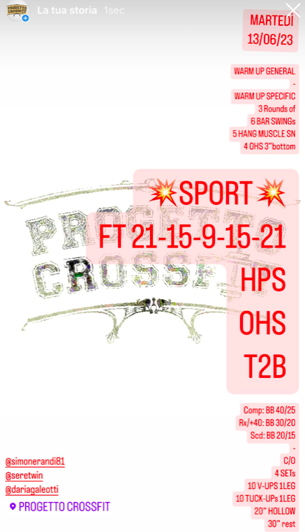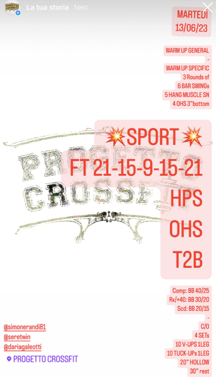 Pubblicato daprogettocrossfit13 giugno 202328 giugno 2023Pubblicato in: Wod Condividi: Fai clic per condividere su X (Si apre in una nuova finestra) X Fai clic per condividere su Facebook (Si apre in una nuova finestra) Facebook Mi piace Caricamento... Correlati