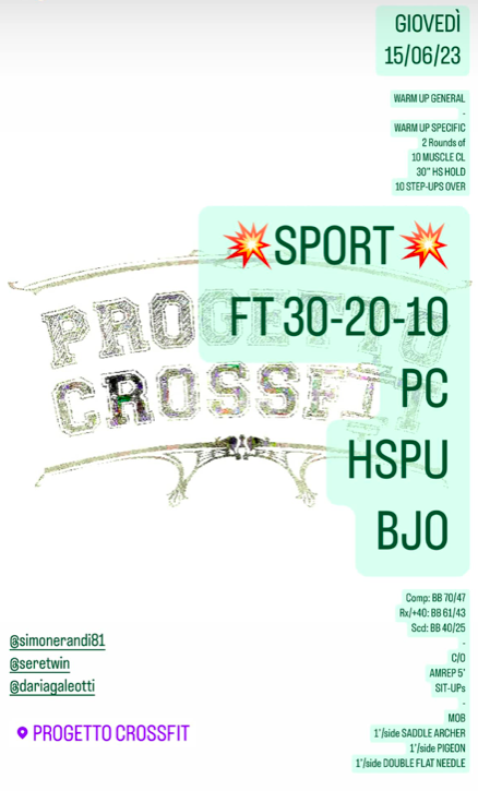 Pubblicato daprogettocrossfit15 giugno 202328 giugno 2023Pubblicato in: Wod Condividi: Fai clic per condividere su X (Si apre in una nuova finestra) X Fai clic per condividere su Facebook (Si apre in una nuova finestra) Facebook Mi piace Caricamento... Correlati