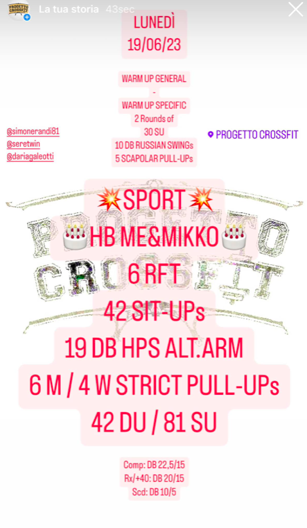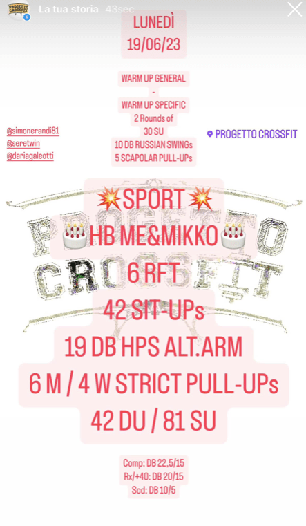 Pubblicato daprogettocrossfit19 giugno 202328 giugno 2023Pubblicato in: Wod Condividi: Fai clic per condividere su X (Si apre in una nuova finestra) X Fai clic per condividere su Facebook (Si apre in una nuova finestra) Facebook Mi piace Caricamento... Correlati