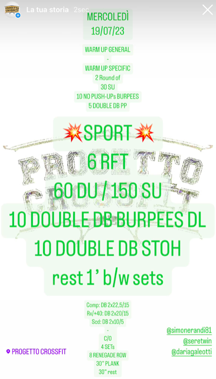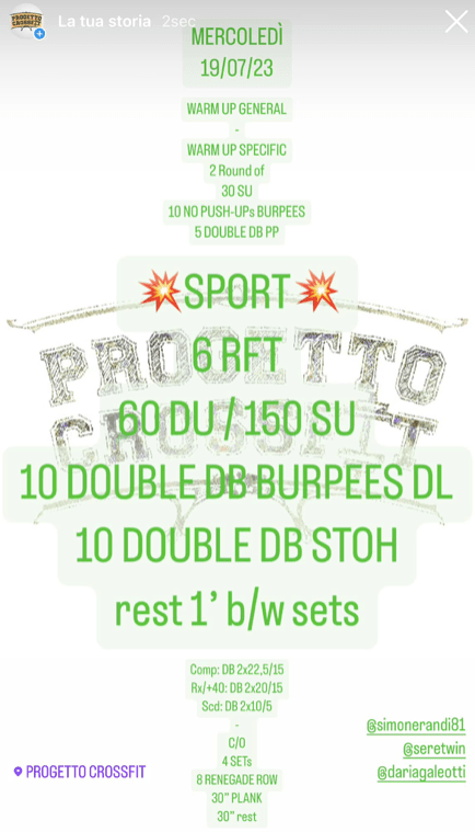 Pubblicato daprogettocrossfit19 luglio 202329 luglio 2023Pubblicato in: Wod Condividi: Fai clic per condividere su X (Si apre in una nuova finestra) X Fai clic per condividere su Facebook (Si apre in una nuova finestra) Facebook Mi piace Caricamento... Correlati