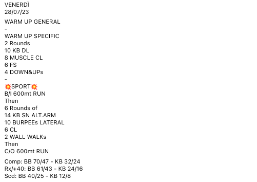 Pubblicato daprogettocrossfit28 luglio 20236 agosto 2023Pubblicato in: Wod Condividi: Fai clic per condividere su X (Si apre in una nuova finestra) X Fai clic per condividere su Facebook (Si apre in una nuova finestra) Facebook Mi piace Caricamento... Correlati