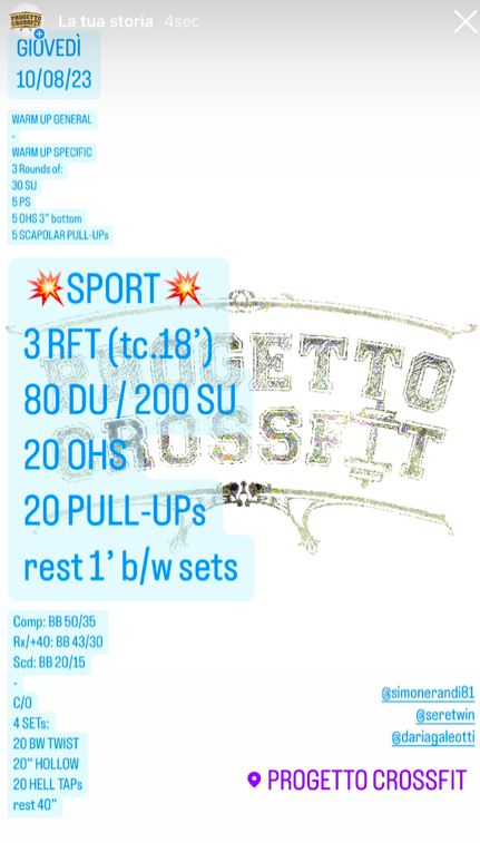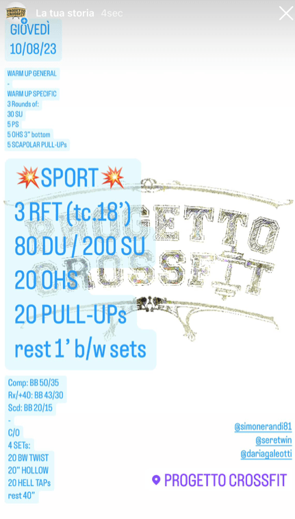 Wod 100823 Pubblicato daprogettocrossfit10 agosto 202325 agosto 2023Pubblicato in: Wod Condividi: Fai clic per condividere su X (Si apre in una nuova finestra) X Fai clic per condividere su Facebook (Si apre in una nuova finestra) Facebook Mi piace Caricamento... Correlati
