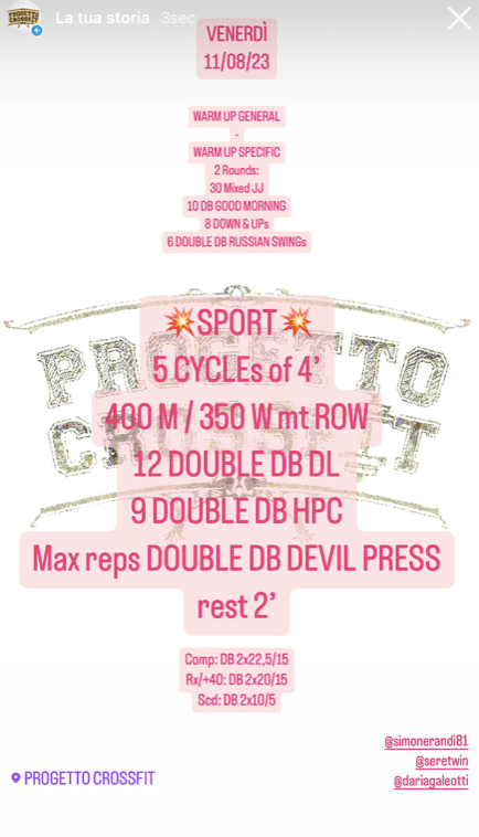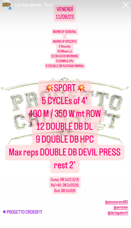 Wod 110823 Pubblicato daprogettocrossfit11 agosto 202325 agosto 2023Pubblicato in: Wod Condividi: Fai clic per condividere su X (Si apre in una nuova finestra) X Fai clic per condividere su Facebook (Si apre in una nuova finestra) Facebook Mi piace Caricamento... Correlati