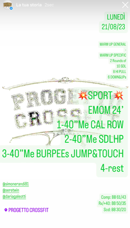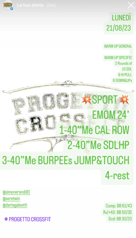 Wod 210823 Pubblicato daprogettocrossfit21 agosto 202325 agosto 2023Pubblicato in: Wod Condividi: Fai clic per condividere su X (Si apre in una nuova finestra) X Fai clic per condividere su Facebook (Si apre in una nuova finestra) Facebook Mi piace Caricamento... Correlati