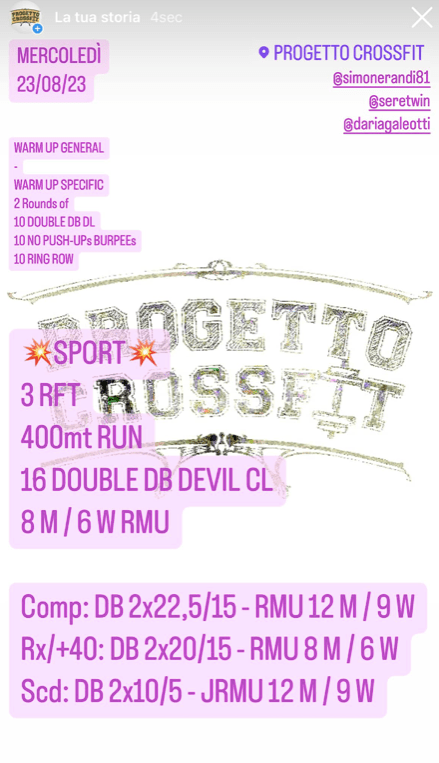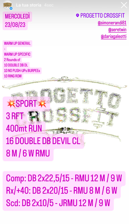 Wod 230823 Pubblicato daprogettocrossfit23 agosto 202325 agosto 2023Pubblicato in: Wod Condividi: Fai clic per condividere su X (Si apre in una nuova finestra) X Fai clic per condividere su Facebook (Si apre in una nuova finestra) Facebook Mi piace Caricamento... Correlati