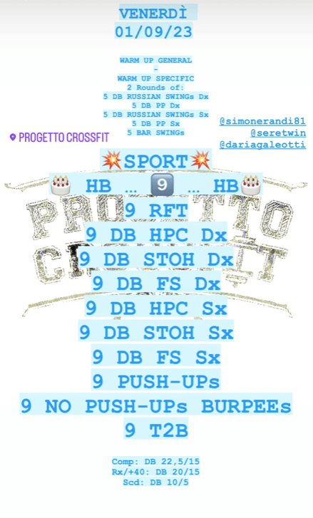 Pubblicato daprogettocrossfit1 settembre 202313 settembre 2023Pubblicato in: Wod Condividi: Fai clic per condividere su X (Si apre in una nuova finestra) X Fai clic per condividere su Facebook (Si apre in una nuova finestra) Facebook Mi piace Caricamento... Correlati
