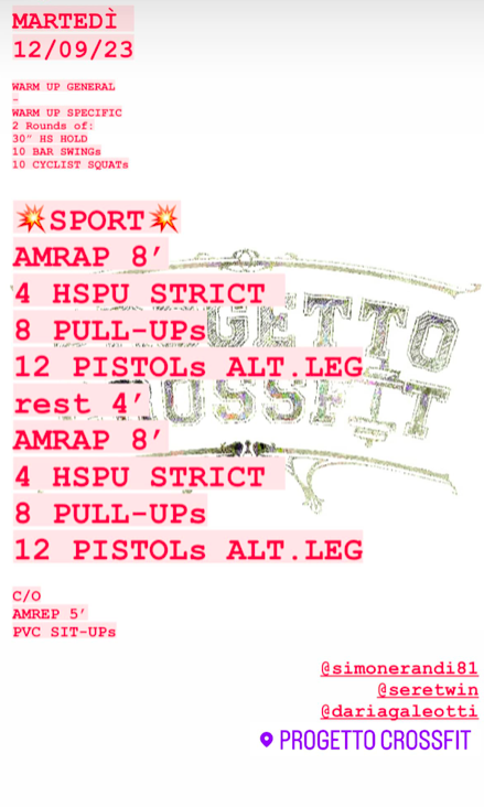 WOD 120923 Pubblicato daprogettocrossfit12 settembre 202313 settembre 2023Pubblicato in: Wod Condividi: Fai clic per condividere su X (Si apre in una nuova finestra) X Fai clic per condividere su Facebook (Si apre in una nuova finestra) Facebook Mi piace Caricamento... Correlati