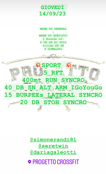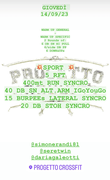 Pubblicato daprogettocrossfit14 settembre 20235 ottobre 2023Pubblicato in: Wod Condividi: Fai clic per condividere su X (Si apre in una nuova finestra) X Fai clic per condividere su Facebook (Si apre in una nuova finestra) Facebook Mi piace Caricamento... Correlati