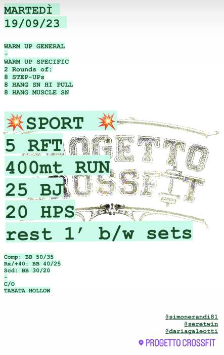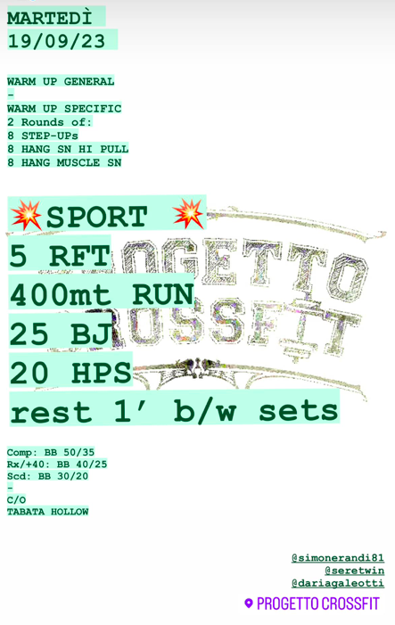 Pubblicato daprogettocrossfit19 settembre 20235 ottobre 2023Pubblicato in: Wod Condividi: Fai clic per condividere su X (Si apre in una nuova finestra) X Fai clic per condividere su Facebook (Si apre in una nuova finestra) Facebook Mi piace Caricamento... Correlati