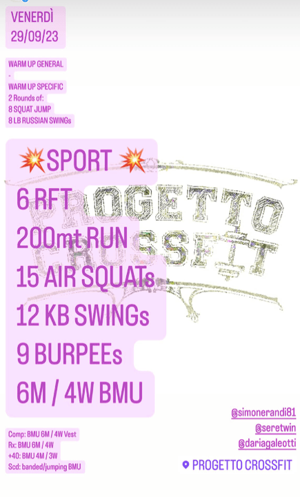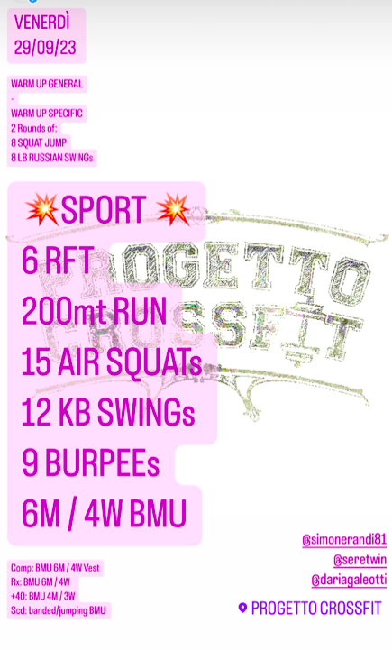 Pubblicato daprogettocrossfit29 settembre 20235 ottobre 2023Pubblicato in: Wod Condividi: Fai clic per condividere su X (Si apre in una nuova finestra) X Fai clic per condividere su Facebook (Si apre in una nuova finestra) Facebook Mi piace Caricamento... Correlati