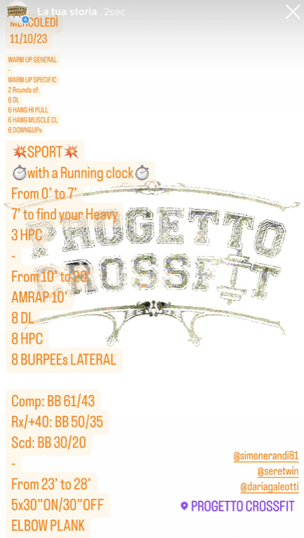 Pubblicato daprogettocrossfit11 ottobre 202319 ottobre 2023Pubblicato in: Wod Condividi: Fai clic per condividere su X (Si apre in una nuova finestra) X Fai clic per condividere su Facebook (Si apre in una nuova finestra) Facebook Mi piace Caricamento... Correlati