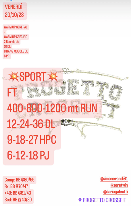 Pubblicato daprogettocrossfit20 ottobre 202315 novembre 2023Pubblicato in: Wod Condividi: Fai clic per condividere su X (Si apre in una nuova finestra) X Fai clic per condividere su Facebook (Si apre in una nuova finestra) Facebook Mi piace Caricamento... Correlati