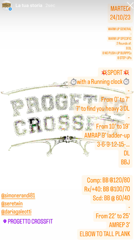 Pubblicato daprogettocrossfit24 ottobre 202315 novembre 2023Pubblicato in: Wod Condividi: Fai clic per condividere su X (Si apre in una nuova finestra) X Fai clic per condividere su Facebook (Si apre in una nuova finestra) Facebook Mi piace Caricamento... Correlati