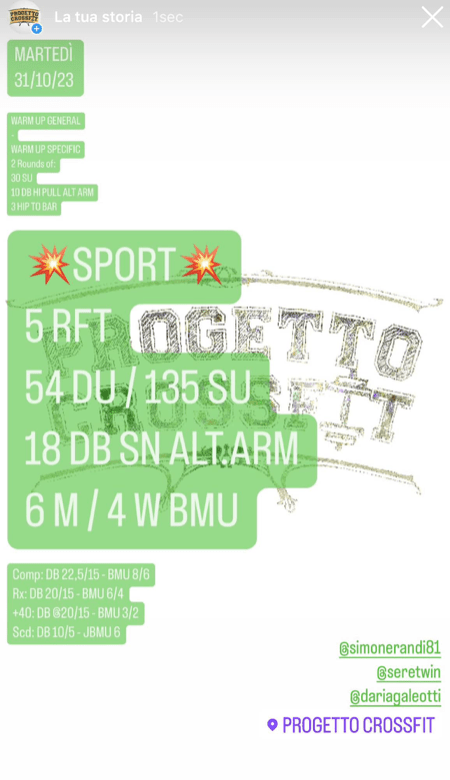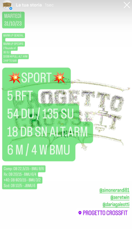 Pubblicato daprogettocrossfit31 ottobre 202315 novembre 2023Pubblicato in: Wod Condividi: Fai clic per condividere su X (Si apre in una nuova finestra) X Fai clic per condividere su Facebook (Si apre in una nuova finestra) Facebook Mi piace Caricamento... Correlati
