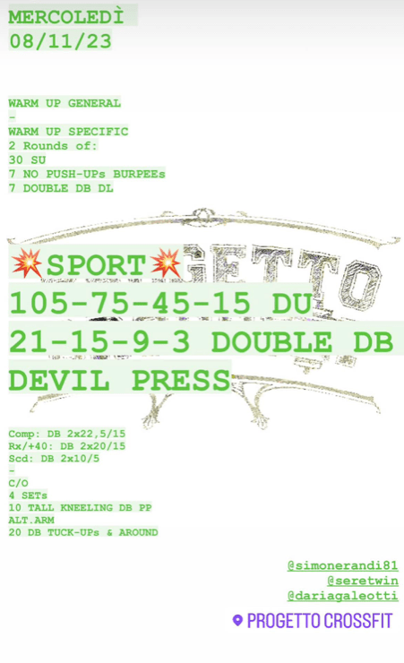 Pubblicato daprogettocrossfit8 novembre 202315 novembre 2023Pubblicato in: Wod Condividi: Fai clic per condividere su X (Si apre in una nuova finestra) X Fai clic per condividere su Facebook (Si apre in una nuova finestra) Facebook Mi piace Caricamento... Correlati