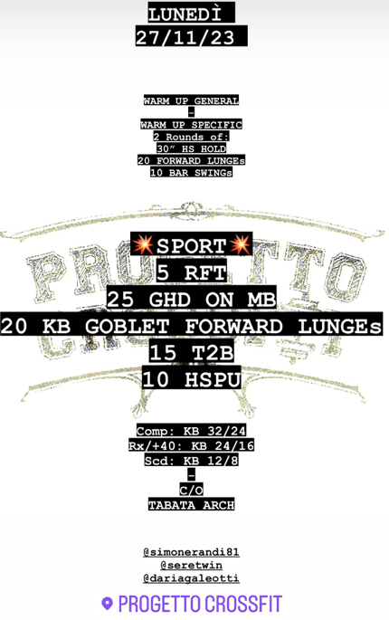 Pubblicato daprogettocrossfit27 novembre 202328 novembre 2023Pubblicato in: Wod Condividi: Fai clic per condividere su X (Si apre in una nuova finestra) X Fai clic per condividere su Facebook (Si apre in una nuova finestra) Facebook Mi piace Caricamento... Correlati