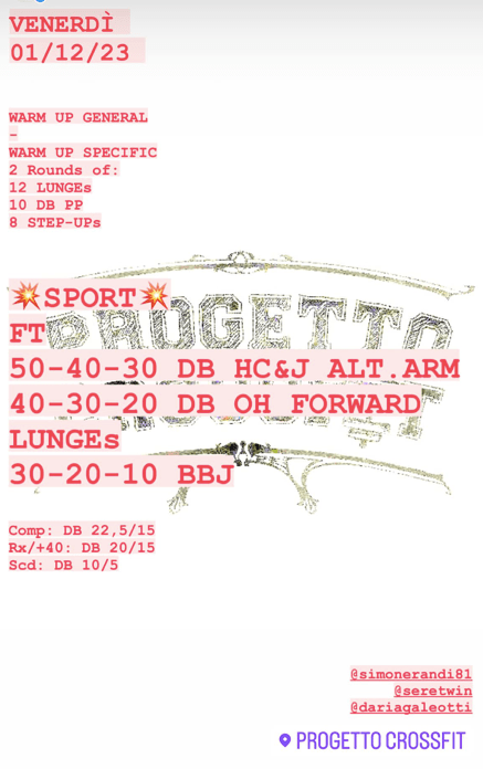 Pubblicato daprogettocrossfit1 dicembre 202324 dicembre 2023Pubblicato in: Wod Condividi: Fai clic per condividere su X (Si apre in una nuova finestra) X Fai clic per condividere su Facebook (Si apre in una nuova finestra) Facebook Mi piace Caricamento... Correlati