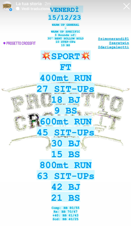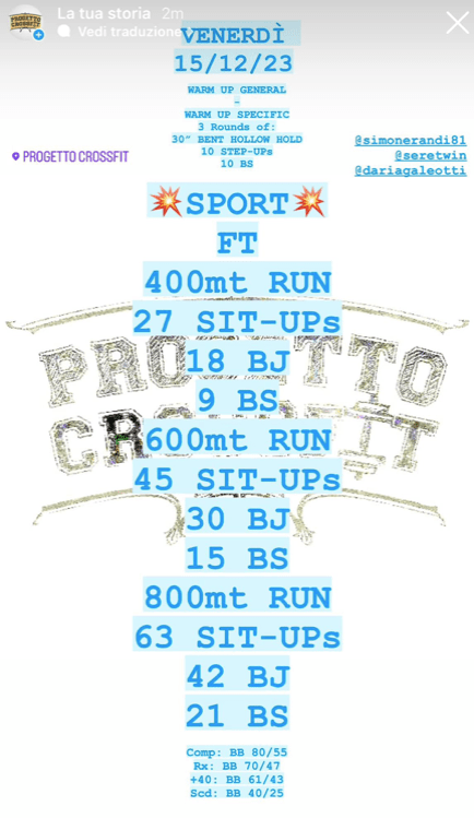 Pubblicato daprogettocrossfit15 dicembre 202325 dicembre 2023Pubblicato in: Wod Condividi: Fai clic per condividere su X (Si apre in una nuova finestra) X Fai clic per condividere su Facebook (Si apre in una nuova finestra) Facebook Mi piace Caricamento... Correlati