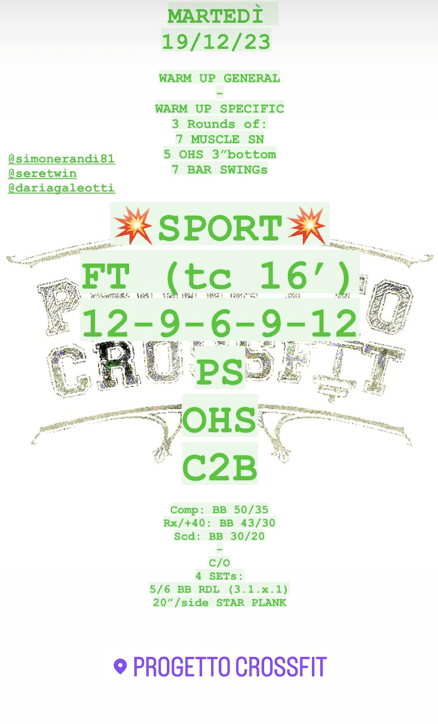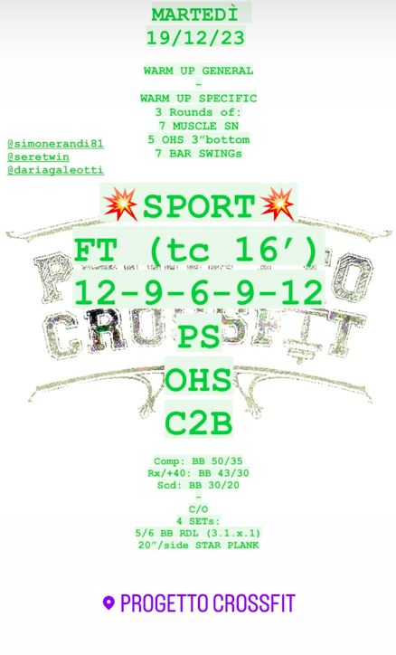 Pubblicato daprogettocrossfit19 dicembre 202325 dicembre 2023Pubblicato in: Wod Condividi: Fai clic per condividere su X (Si apre in una nuova finestra) X Fai clic per condividere su Facebook (Si apre in una nuova finestra) Facebook Mi piace Caricamento... Correlati