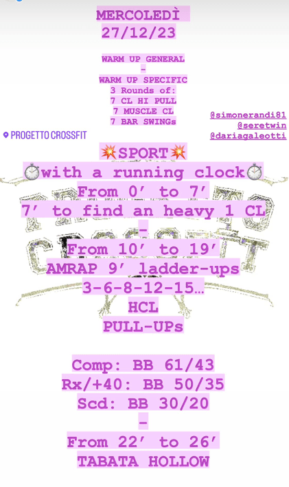 Pubblicato daprogettocrossfit27 dicembre 202314 gennaio 2024Pubblicato in: Wod Condividi: Fai clic per condividere su X (Si apre in una nuova finestra) X Fai clic per condividere su Facebook (Si apre in una nuova finestra) Facebook Mi piace Caricamento... Correlati