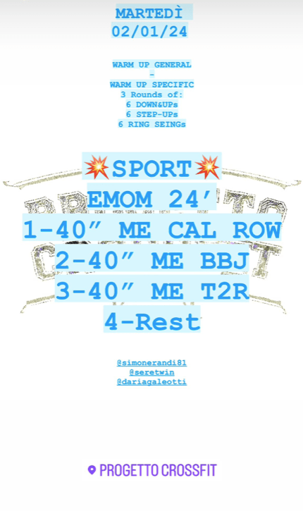 Pubblicato daprogettocrossfit2 gennaio 202414 gennaio 2024Pubblicato in: Wod Condividi: Fai clic per condividere su X (Si apre in una nuova finestra) X Fai clic per condividere su Facebook (Si apre in una nuova finestra) Facebook Mi piace Caricamento... Correlati
