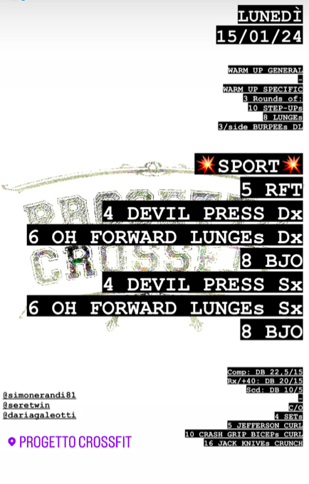 Pubblicato daprogettocrossfit15 gennaio 202411 febbraio 2024Pubblicato in: Wod Condividi: Fai clic per condividere su X (Si apre in una nuova finestra) X Fai clic per condividere su Facebook (Si apre in una nuova finestra) Facebook Mi piace Caricamento... Correlati