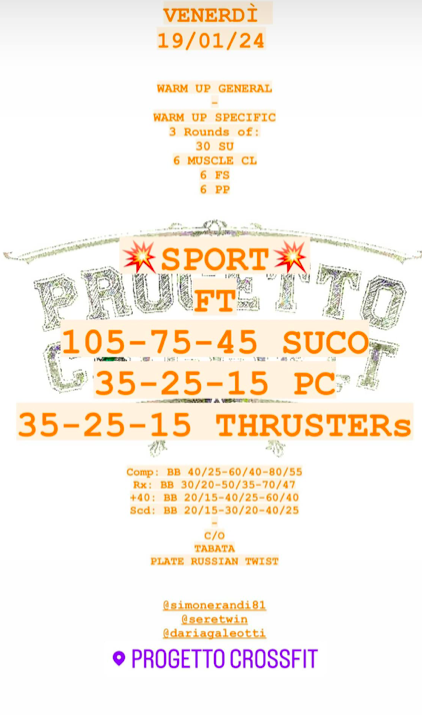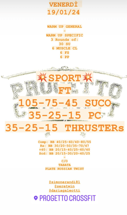 Pubblicato daprogettocrossfit19 gennaio 202411 febbraio 2024Pubblicato in: Wod Condividi: Fai clic per condividere su X (Si apre in una nuova finestra) X Fai clic per condividere su Facebook (Si apre in una nuova finestra) Facebook Mi piace Caricamento... Correlati