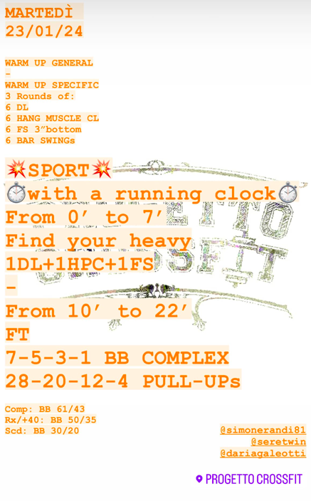 Pubblicato daprogettocrossfit23 gennaio 202411 febbraio 2024Pubblicato in: Wod Condividi: Fai clic per condividere su X (Si apre in una nuova finestra) X Fai clic per condividere su Facebook (Si apre in una nuova finestra) Facebook Mi piace Caricamento... Correlati