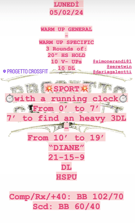 Pubblicato daprogettocrossfit5 febbraio 202411 febbraio 2024Pubblicato in: Wod Condividi: Fai clic per condividere su X (Si apre in una nuova finestra) X Fai clic per condividere su Facebook (Si apre in una nuova finestra) Facebook Mi piace Caricamento... Correlati