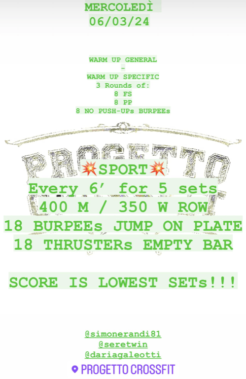 Pubblicato daprogettocrossfit6 marzo 20241 aprile 2024Pubblicato in: Wod Condividi: Fai clic per condividere su X (Si apre in una nuova finestra) X Fai clic per condividere su Facebook (Si apre in una nuova finestra) Facebook Mi piace Caricamento... Correlati